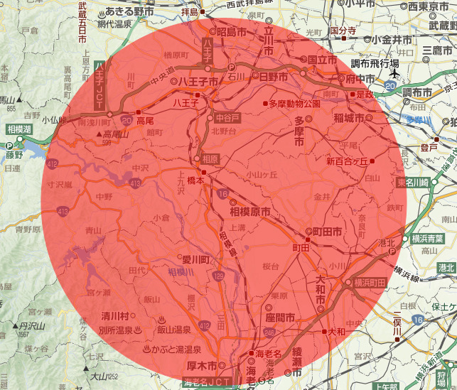 ジャンプライフサポート社を中心に16kmが当社がお伺いできるエリアです |